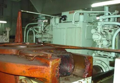 對(duì)于轉(zhuǎn)葉式舵機(jī)的維修,日常的維修主要集中在油泵和控制閥件上的正常保養(yǎng),對(duì)于5年以上未檢修的設(shè)備,建議將轉(zhuǎn)舵油缸的上端蓋拆開(kāi),檢查內(nèi)部轉(zhuǎn)子的狀況,如果內(nèi)部工作油腔工作正常,未出現(xiàn)劃痕,舵承間隙正常范圍內(nèi),即可更換上端蓋的密封,重新安裝上端蓋,即可,不需要一定拆卸轉(zhuǎn)子,但這個(gè)過(guò)程也必須在塢內(nèi)進(jìn)行,因?yàn)樵诤C嫔鲜遣豢梢蚤_(kāi)啟舵機(jī)上端蓋,轉(zhuǎn)葉式舵機(jī)打開(kāi)轉(zhuǎn)舵油缸就沒(méi)有任何鎖閉舵葉的功能,一點(diǎn)微弱的海浪就會(huì)導(dǎo)致轉(zhuǎn)舵有缸內(nèi)的液壓油噴濺,無(wú)法安裝上蓋的密封,甚至出現(xiàn)葉片嚴(yán)重的撞擊缸體,后果很?chē)?yán)重。對(duì)于轉(zhuǎn)葉油缸內(nèi)部葉片的密封,大家一定注意,勞斯萊斯采用的是橡膠密封條,是有年限的,理論上7.5年需要更換。而波斯格倫舵機(jī)的葉片密封條采用的是合金鑄鐵加上彈簧的密封條,是不需要更換的,只要沒(méi)有嚴(yán)重的拉傷,密封條是可以終身使用的。